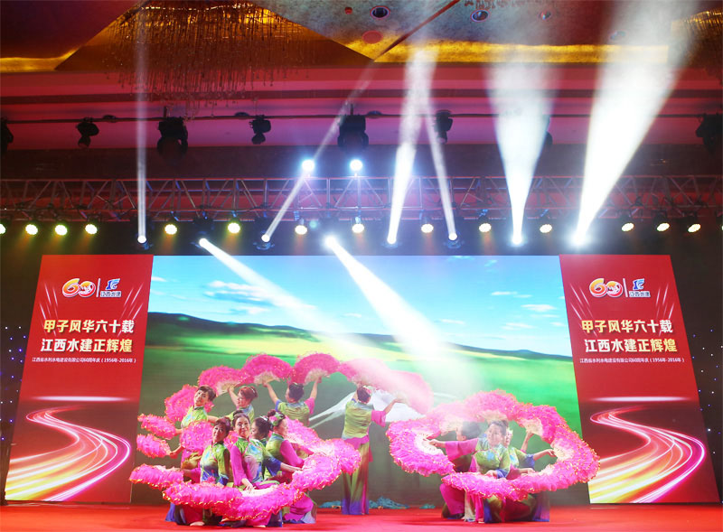 在喜慶熱鬧的開場舞《盛世中華》樂曲聲中,拉開了晚會的序幕,一曲優(yōu)美動聽的《今天是你的生日》,表達了對公司六十華誕的深情祝福,配樂詩朗誦《我驕傲,我是水建人》抒發(fā)了水建人對水利事業(yè)的熱愛與執(zhí)著,舞蹈《我的祖國》,展現(xiàn)了公司退休女職工的精神風(fēng)采和對公司的深厚感情,男聲獨唱《羅灣那個地方》,喚起了多少“羅灣水建人”曾經(jīng)在那里生活的記憶,來自上海的退休職工代表,為晚會帶來一首自己改編的歌曲《水建的朋友來相會》,詮釋了他們的激情與夢想,最后,由公司高中層管理人員和總部員工組成的60人大合唱《團結(jié)就是力量》,把晚會推向了高潮。團結(jié)是我們的力量之源,團結(jié)是企業(yè)騰飛的支點,走過了六十年輝煌歷程的江西水建,正在昂首闊步踏上新的征程。讓我們團結(jié)起來,以必勝的信心,發(fā)奮的努力,繼承和發(fā)揚老一輩水建人的精神和傳統(tǒng),擔(dān)當起新一代水建人改革創(chuàng)新科學(xué)發(fā)展的光榮使命,繼往開來,解放思想,開拓創(chuàng)新,凝心聚力,不斷開創(chuàng)江西水建發(fā)展的新局面,創(chuàng)造更加燦爛的明天!